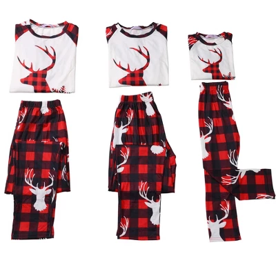 - Features long sleeves, crew neck and sleeve cuffs, cute deer print, with elastic waist plaid pants