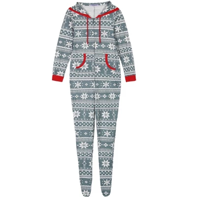 Cheibear Christmas Family One Piece Romper PJ’s Zipper Jumpsuit Xmas Party Loungewear With Pockets
