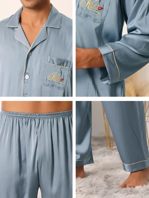 Cheibear Men’s Sleepwear Long Sleeve Button Down Shirt Pants Matching Couple Pajama Sets