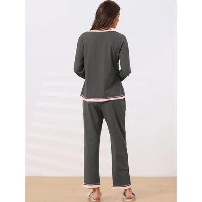 Cheibear Women’s Long Sleeve Shirt And Long Pants With Pocket Loungewear 2 Pieces Sleep Sets