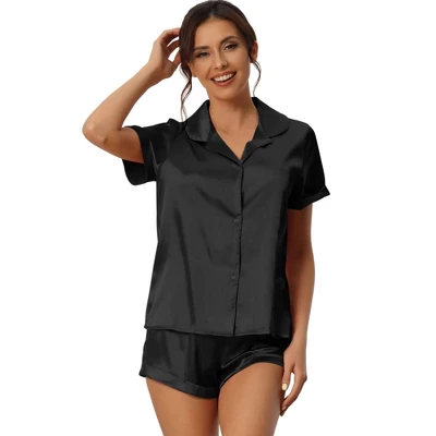 - Made from shiny silky satin, these button-down shirt and shorts pajama sets are extremely soft and comfortable for daily and night