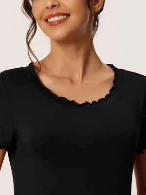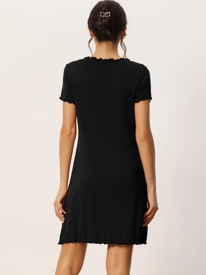 Cheibear Women’s Sleepshirt Short Sleeve Ruffle Loungewear Nightshirts