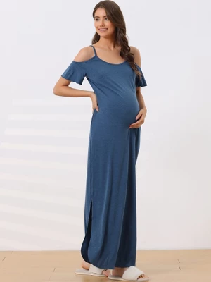Cheibear Women’s Summer Cold Shoulder With Pockets Casual Maxi Maternity Lounge Dress
