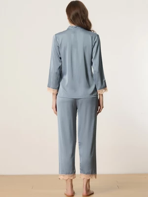 - Featuring 2 pieces, soft lace trimbutton shirt and long pants