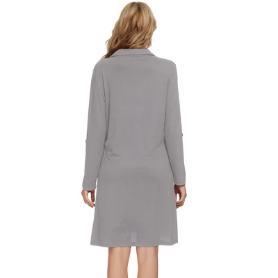 Sleepshirt Nightshirt Long Sleeve Nightgown Sleep Shirt Dress. Featuring long sleeve, below knee length, round neck button down nightgown. No matter the cozy bedtime, casual home relax, laze afternoon, comfy bath, the soft and lightweight women’s sleepwear could company with you all the time. This solid pajama nightshirt is perfect on slumber parties, pajama nights or daily wear or as a holiday gift for Mother’s Day, Thanksgiving, Christmas, or birthday. Great for loungewear, nightwear, sleepwear, home bedroom, daily wear.