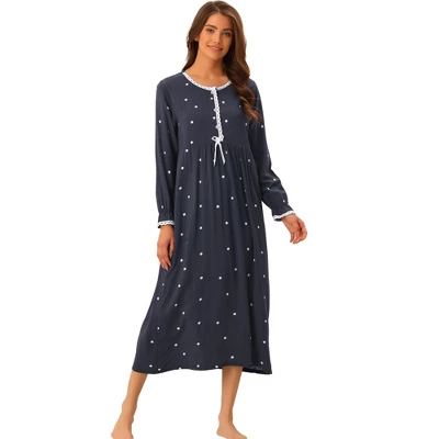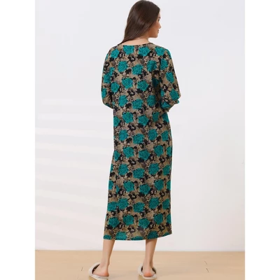 Comfortable loose fit design, casual and stylish, classical print elements.This women’s loungewear pajama shirt dress is made of super soft fabric, comfortable and breathable, skin friendly, easy to put on and take off, and makes you pretty and comfortable all day long.Long sleeves, round neck, lace edge design, the upper half of the body is a half-open button design, lace edge on the cuffs, show cute temperament, waist pleat design, soft and comfortable fabric, let you feel cozy all night long, enjoy a restful sleepWhether cozy bedtime, casual home relaxation, lazy afternoon, or comfortable bath, soft and lightweight women’s nightgowns can always be with you.This midi-length women’s nightgown is perfect for daily wear or casual at home or as a holiday gift for Mother’s Day, Thanksgiving, Christmas, or birthday