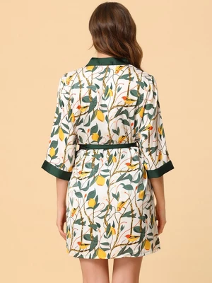 Cheibear Womens Satin Floral Lounge Cami Nightgown Sleepwear 4pcs Pajama Sets