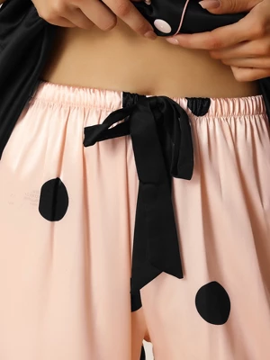 - Elevate your comfort with this stylish Sleepwear Set featuring a button-up top with short sleeves, a notch collar, and pants with an elastic waist for ultimate comfort