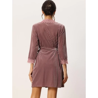 Cheibear Womens Velvet Nightgowns With Robe Lace Trim Loungewear Pajama Sets