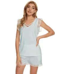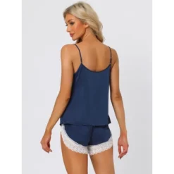 Cheibear Womens Sleepwear Pajamas Tank Tops With Shorts V-Neck Lace Trim Sleeveless Lounge Set