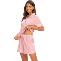 Cheibear Womens Soft Satin Short Sleeve T-Shirt And Shorts With Pockets Pajama Sets 2 Pcs