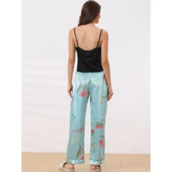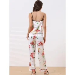 Cheibear Women’s Floral 2 Pieces Pajama Sets Satin Lace Cami Long Pants Sleep Set Loungewear