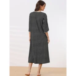 Cheibear Women’s Zip Front Robe 3/4 Sleeve Striped Long Bathrobe Dress Pajama