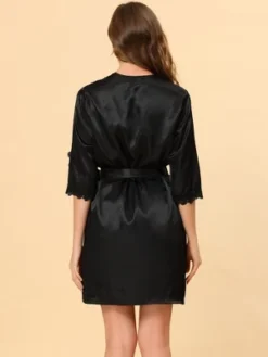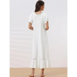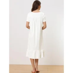 Cheibear Women’s Victorian Ruffle Short Sleeve Tie Neck Pajama Sleep Dress