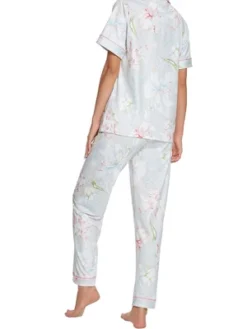 Cheibear Womens Floral Pattern Pajama Set Short Sleeve Shirt And Long Pants Cute Print Sleepwear