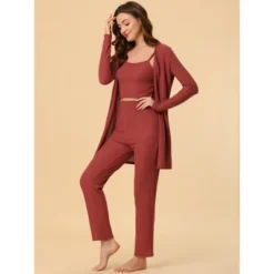 Women’s 3pcs Knit Lounge Sleepwear Pants Shrug Cardigan Pajama Set