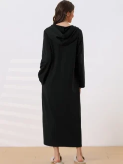 Cheibear Womens Robe Zip Front Hooded House Dress Nightshirt Housecoat Hoodie Long Bathrobe