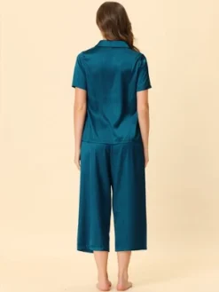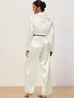Cheibear Womens Satin Button Down Long Sleeve Silky Boyfriend Nightshirt