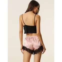 Cheibear Womens Satin Lace Elastic Waist Pajama Shorts 3 Pcs